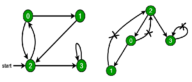 Depth First Traversal can be used to detect a cycle in a Graph. DFS for a connected graph produces a tree. There is a cycle in a graph only if there is a back edge present in the graph. A back edge is an edge that is from a node to itself (self-loop) or one of its ancestor in the tree produced by DFS. In the following graph, there are 3 back edges, marked with a cross sign. We can observe that these 3 back edges indicate 3 cycles present in the graph.